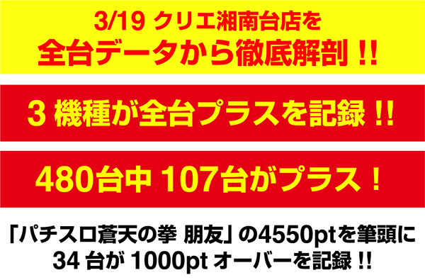 3月19日の「クリエ湘南台店」をシマごとに分析。