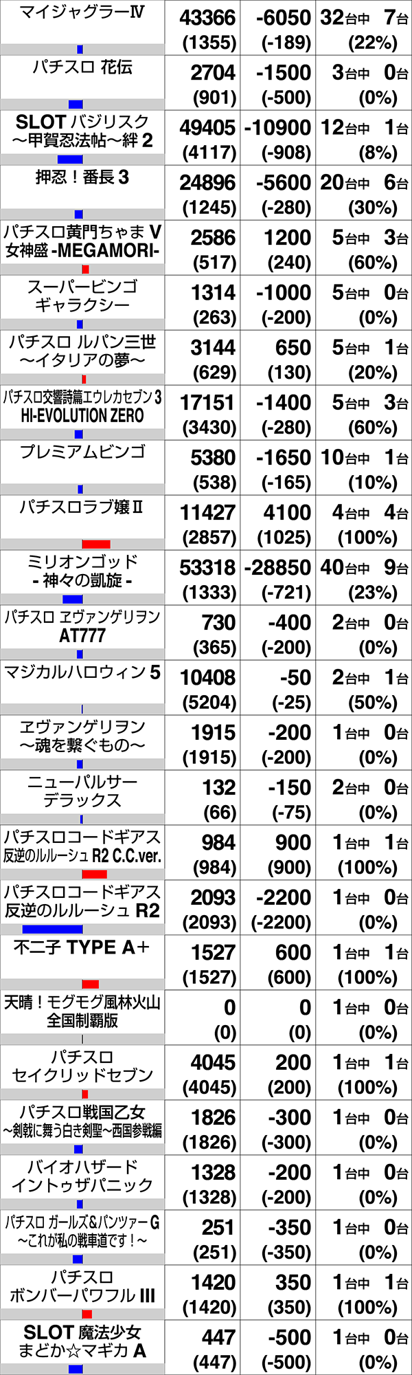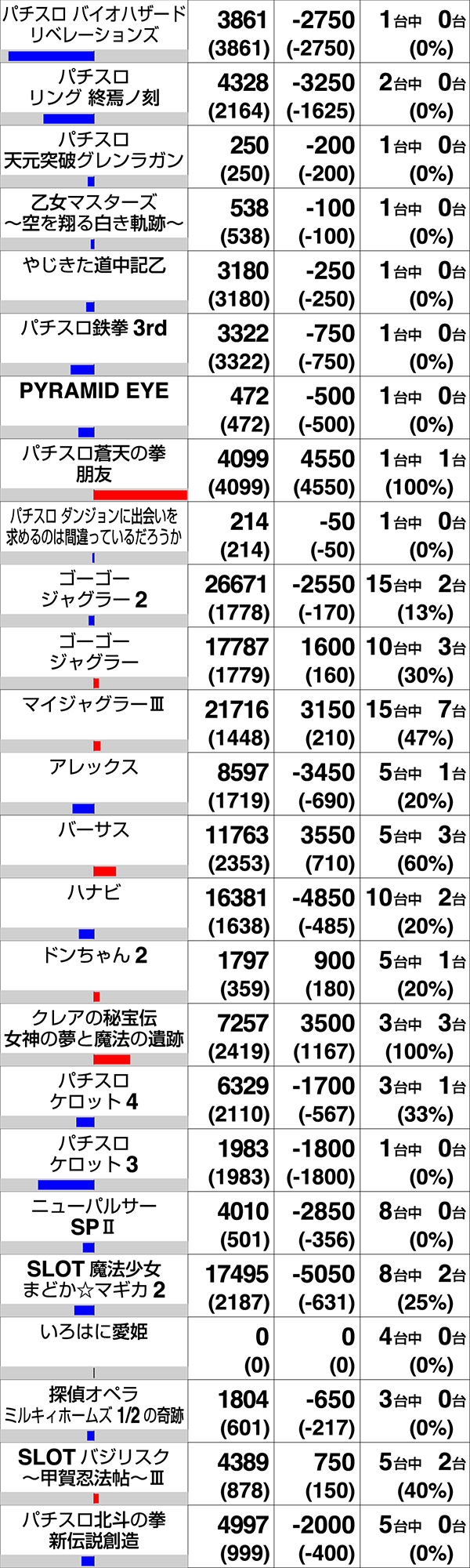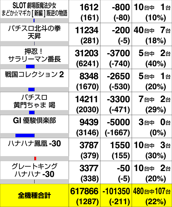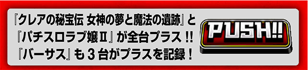 パチスロ全体で107台がプラス。9機種にプラス2000ptオーバーの台があった。