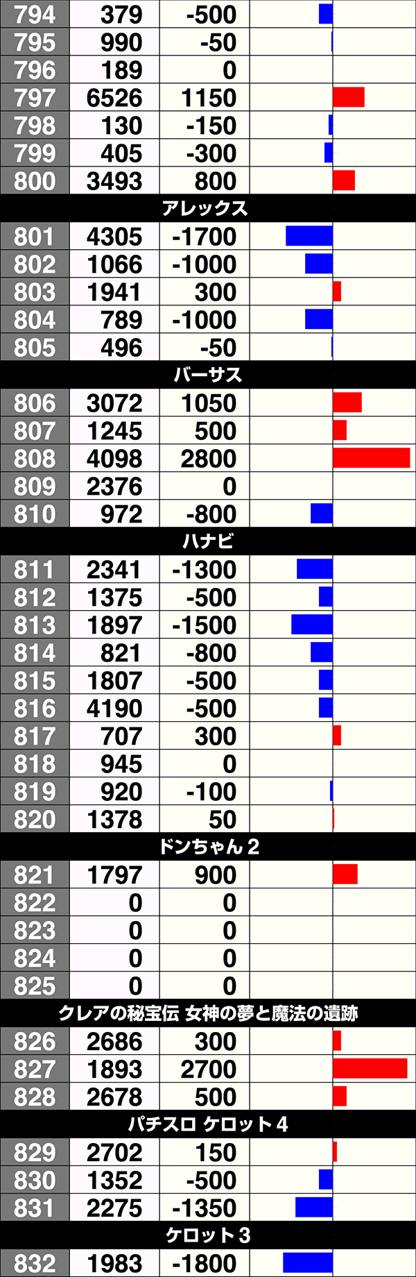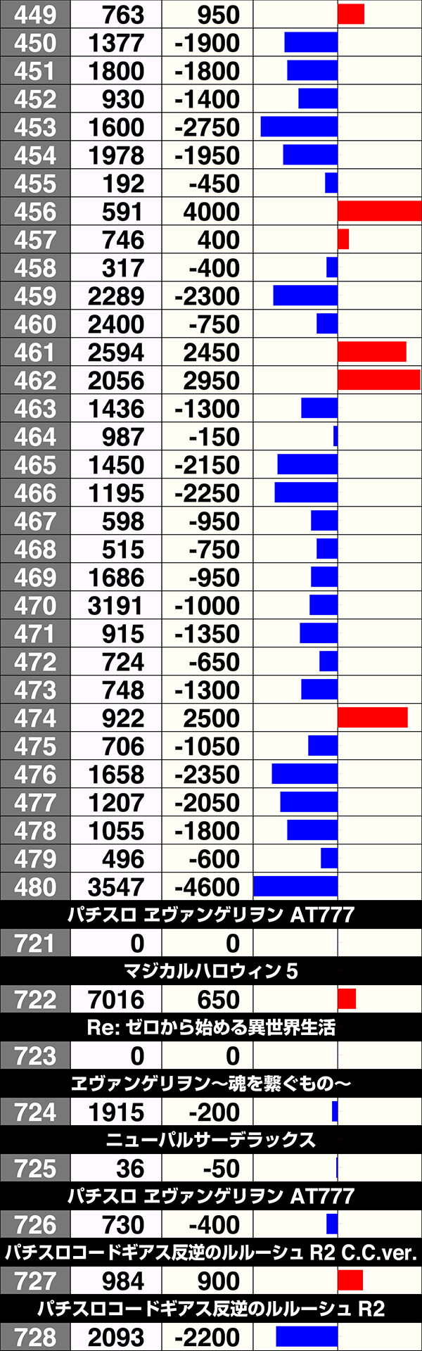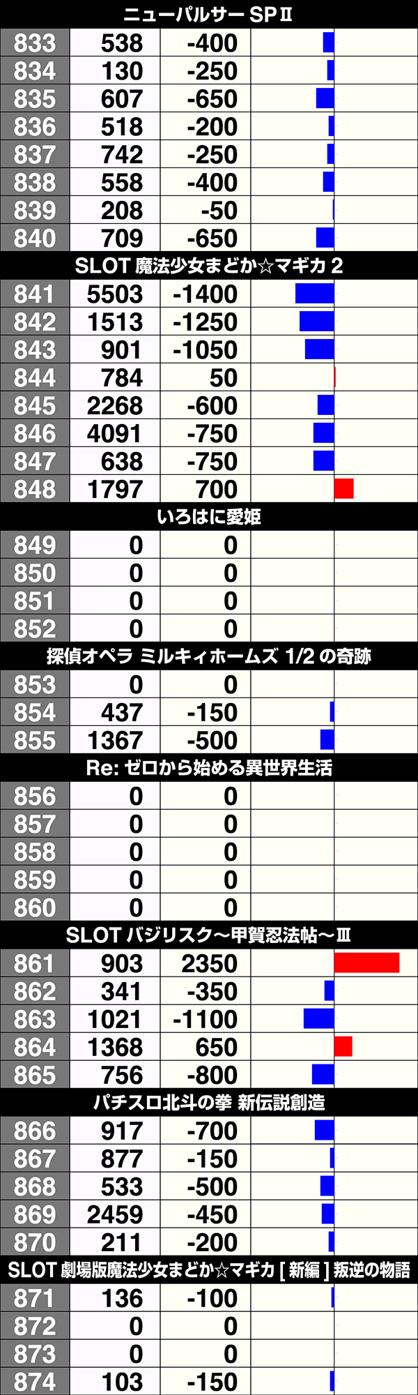 5台設置の『バーサス』と『パチスロディスクアップ』はどちらも3台プラスで、2000ptを上回る台もあった。