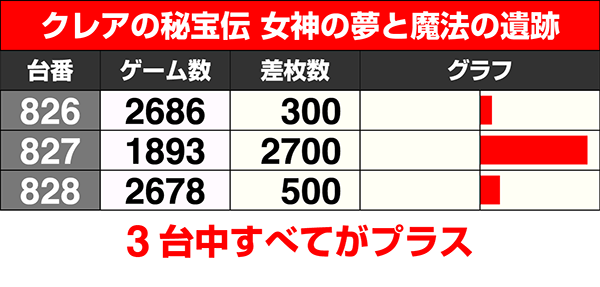 『クレアの秘宝伝 女神の夢と魔法の遺跡』が全台プラス。