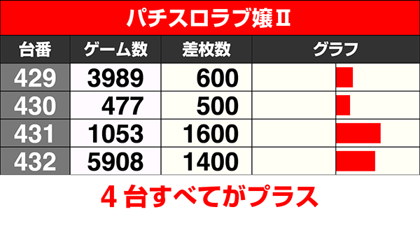 『パチスロラブ嬢Ⅱ』も設置されている4台すべてがプラスだ。