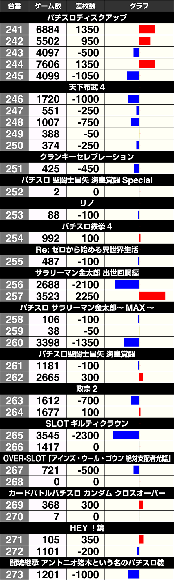 『サラリーマン金太郎 出世回胴編』の257番台が2250ptを記録。