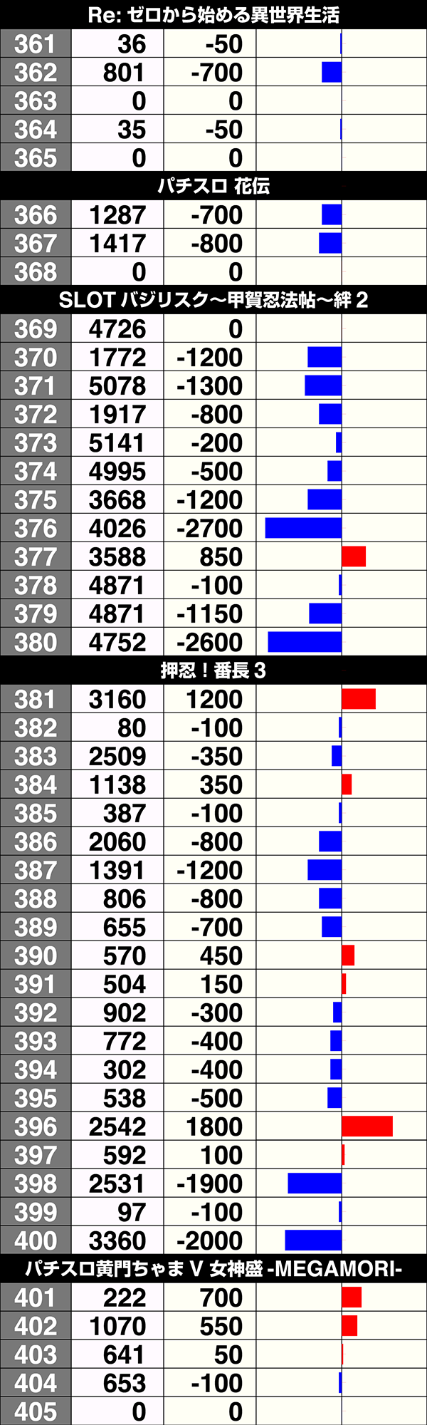 『SLOTバジリスク〜甲賀忍法帖〜Ⅲ』と『戦国コレクション2』に2000pt以上のプラスを記録する台アリ。