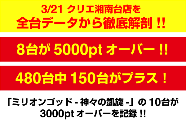 3月21日の「クリエ湘南台店」をシマごとに分析。