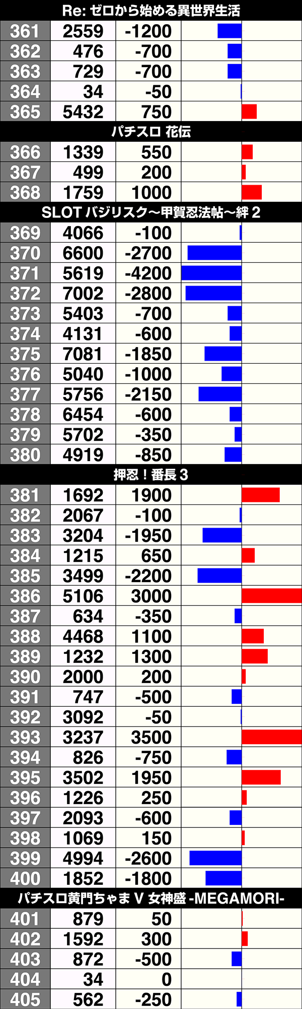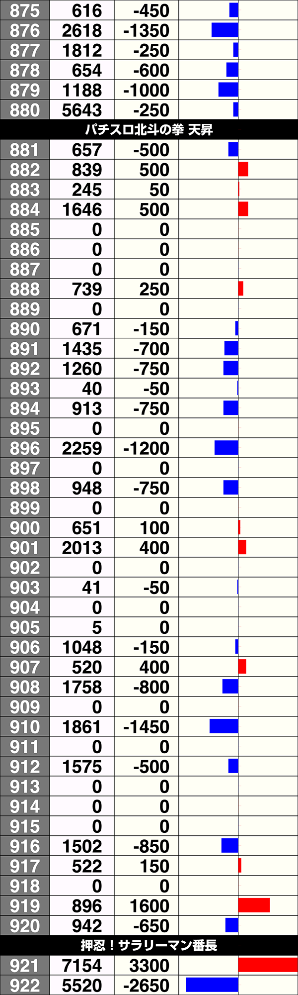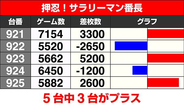 『押忍!サラリーマン番長』はプラスを記録した3台がいずれも2000ptを上回った。