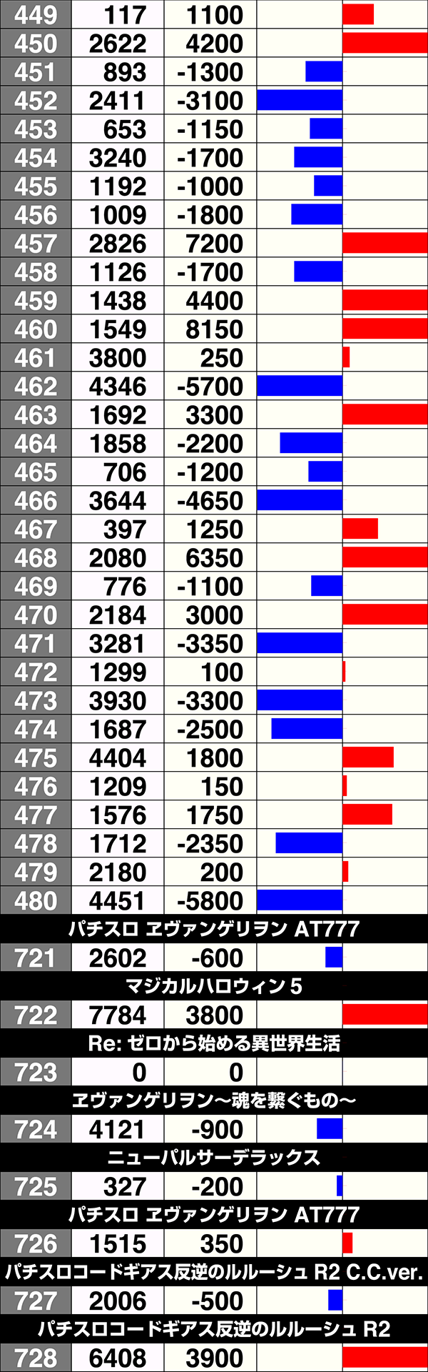 バラエティコーナーの『マジカルハロウィン5』と『パチスロコードギアス反逆のルルーシュR2』は、差枚数が3000ptを超えた。