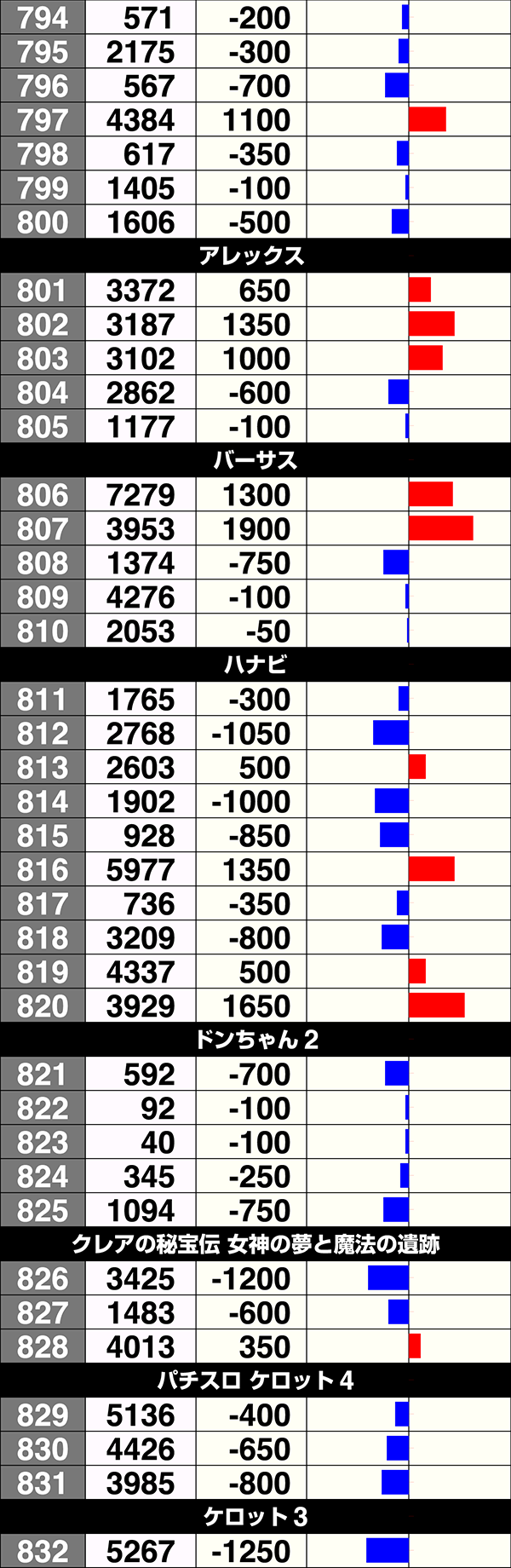 『バーサス』は2台がプラスで、どちらの台も1000ptオーバー。