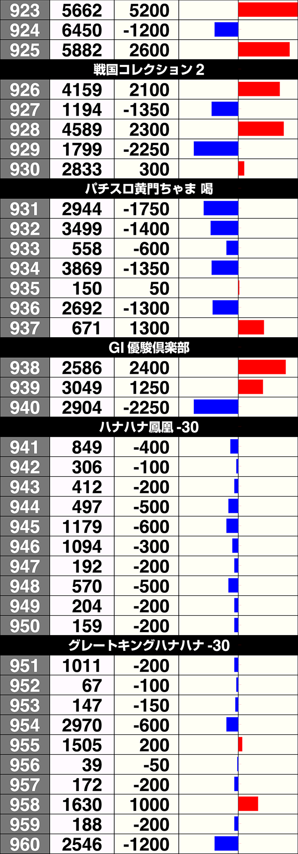 『GI優駿倶楽部』は3台中2台がプラスで、938番台は2400ptを記録した。