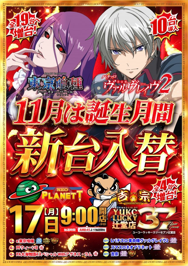 本日11日(火) 9:00OPEN 8:45抽選開始(予定)