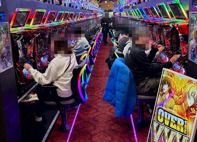 楽しげな雰囲気のホール内は、笑顔でレバーを叩く姿が多数!