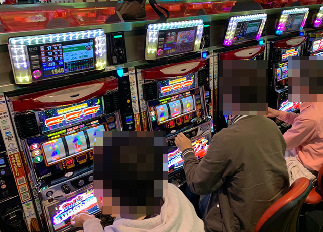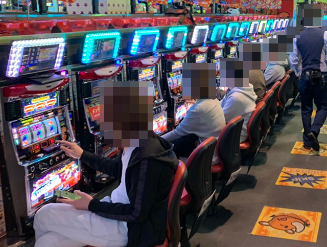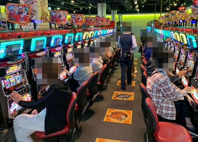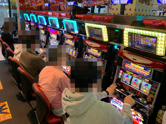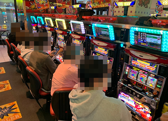 「ファンキージャグラー」をはじめ、いくつもの場所に笑顔が広がっていた「SKIPスロットクラブ小田原錦通り店」。