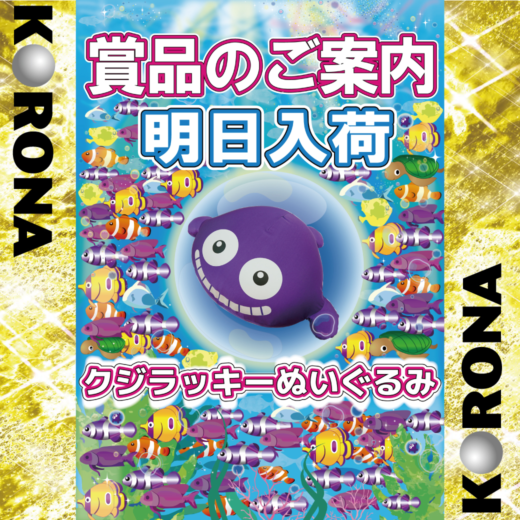 明日11月21日(月)朝9:00開店賞品入荷のご案内クジラッキーぬいぐるみポンパドール エクストラドライ入荷します