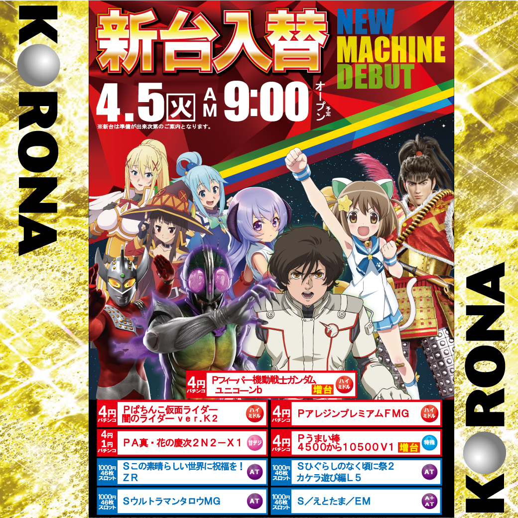 パチンコ コロナ 小田原店のお知らせ一覧