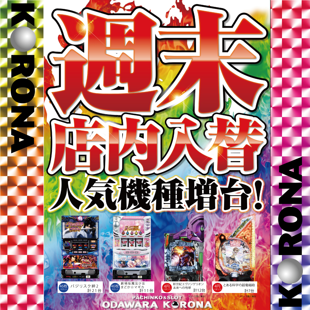1月24日(月)新台入替!8機種60台導入!朝9時開店!