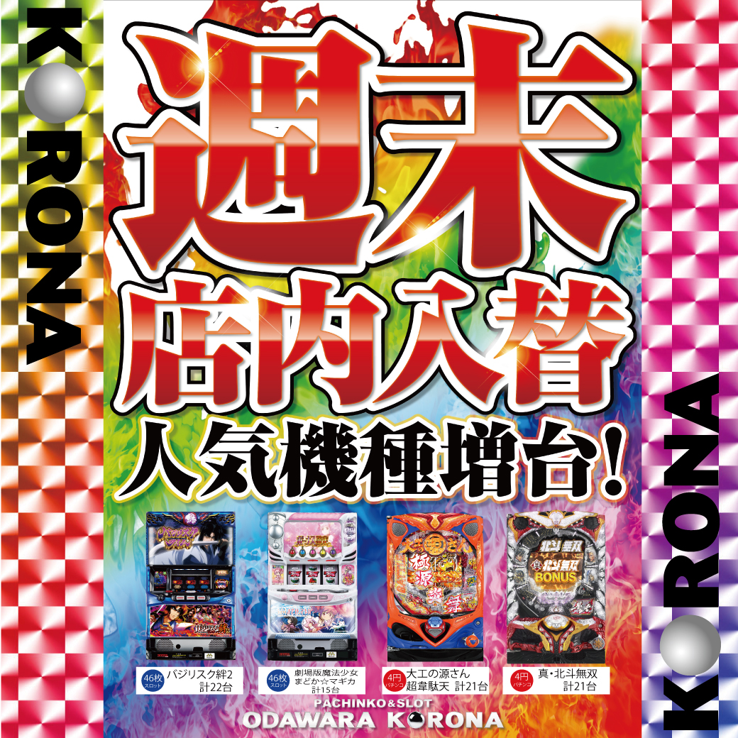 11月28日(日)人気機種増台!週末店内入替!朝9時開店!