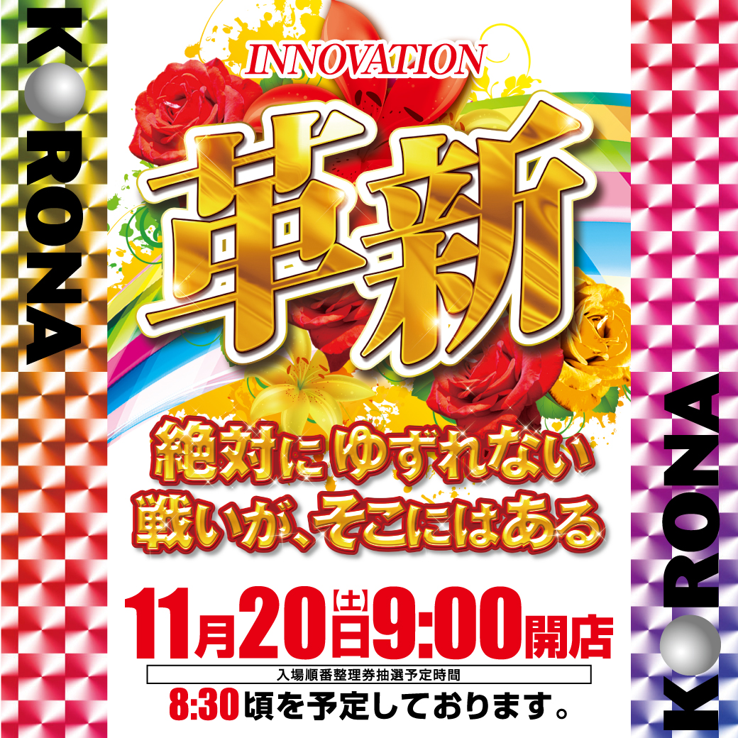 11月22日(月)『感謝』『新台入替』朝9時開店!