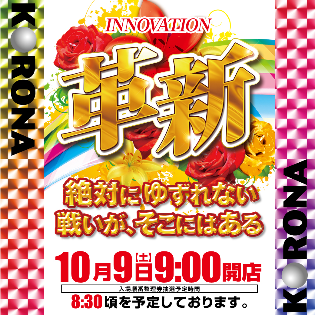 10月9日(土)『革新 INNOVATION』朝9時開店!