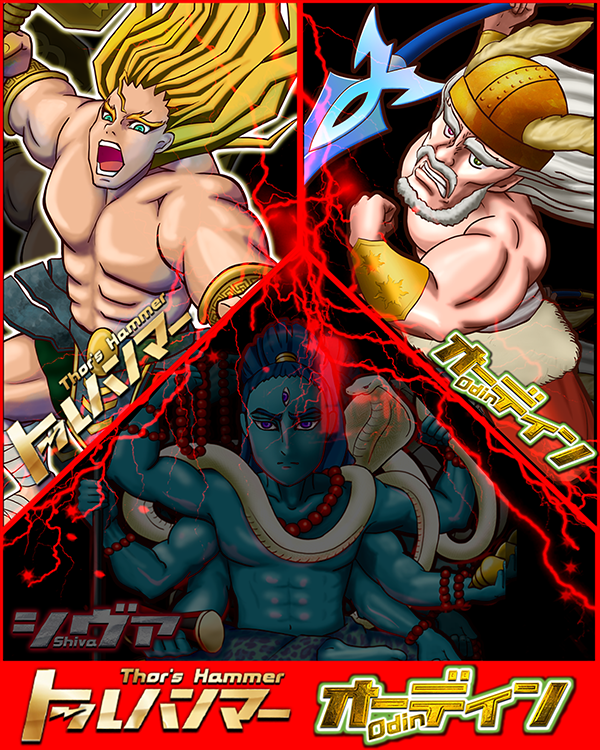 大勢のプレイヤーが集まるホール内に舞い降りたのは、闘神オーディンと雷神トールだ!