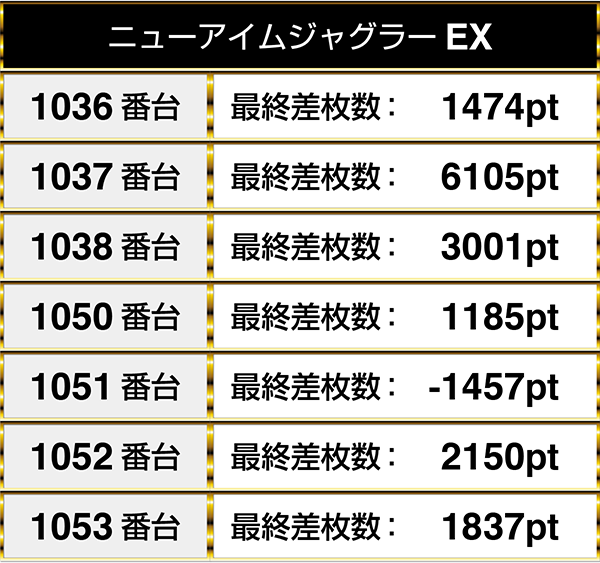最終的にはどちらの機種もすべての台がプラスptとなり、そのうち2台は4000ptオーバーを記録した。