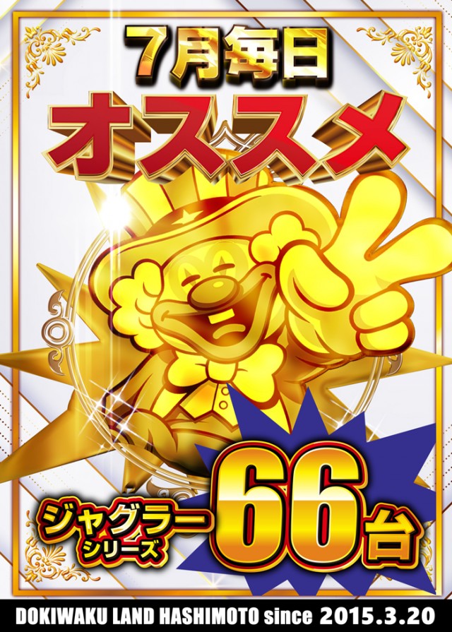 【7月のオススメ機種】 ジャグラーシリーズ全66台設置中