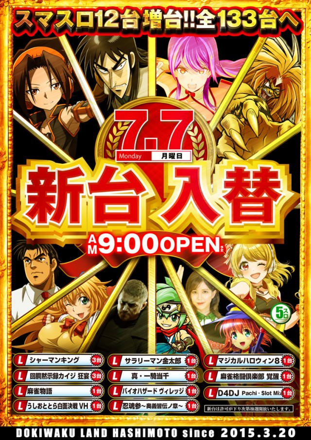 【本日】新台フルオープン🌈スマスロ全133台へ🌈