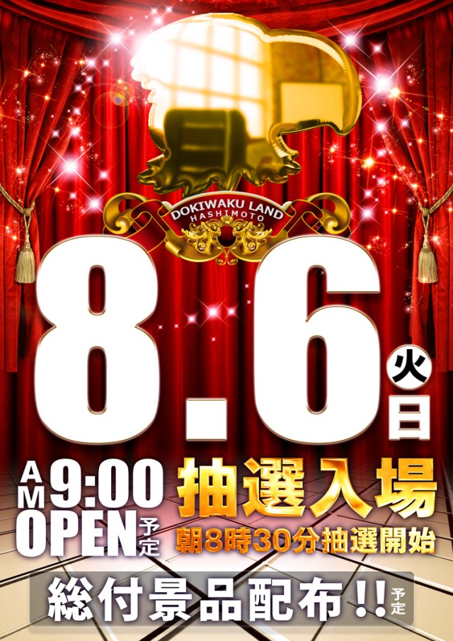 明日★8月6日★【抽選入場】8:30抽選 9:00開店❗