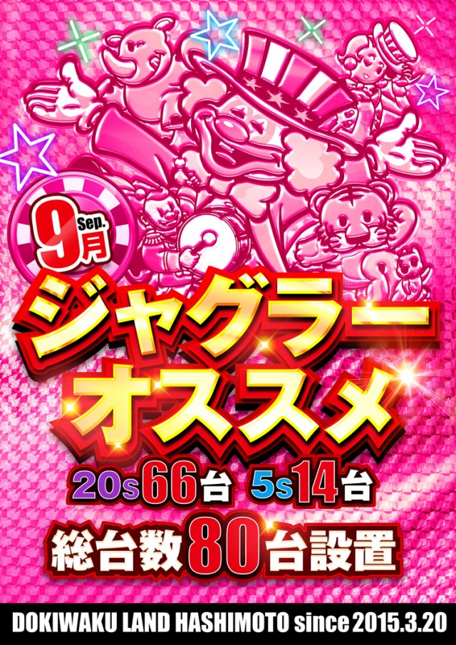 【9月のオススメ機種】 ジャグラーシリーズ全80台設置中