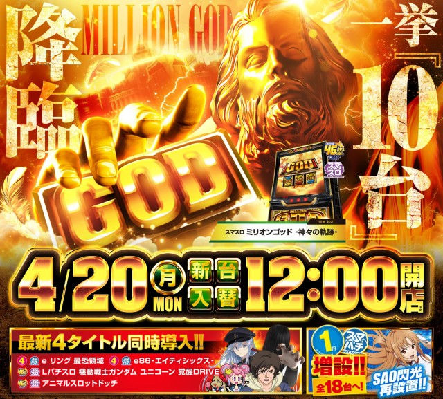【新台入替】【12時開店】ミリオンゴッド最新作!