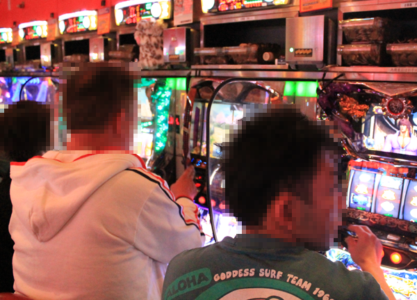 新台の「パチスロバーチャファイター」と「パチスロアレジン」にも多くのプレイヤーがいた。パチンコ・パチスロに関係なく、このホールでは新しい機種が高い支持を受けているのだろう。