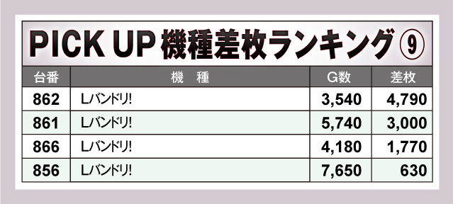 まずは当日の差枚ランキングを紹介していこう。30台のうち25台が差枚+2,000枚オーバーで、+3,000枚オーバーは12台出現。それらのなかでもっとも優秀だった台は、836番台の「パチスロ からくりサーカス」で、差枚は+7,140枚を獲得! その他ランクイン機種を見渡すと、「スマスロ ゴッドイーター リザレクション」や「スロット Re:ゼロから始める異世界生活 season2」など、人気台を中心に特定の機種が複数台ランクイン。ファンからの注目度が高い機種を中心にチカラを入れていたようだ!