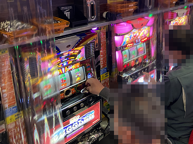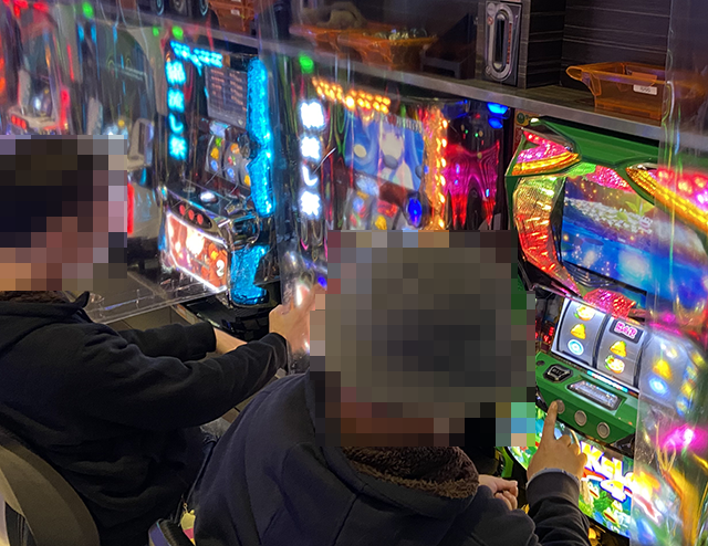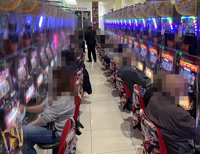 パチスロのシマを中心にまわり、多数の機種でパフォーマンスを披露するプレイヤーを目撃!!