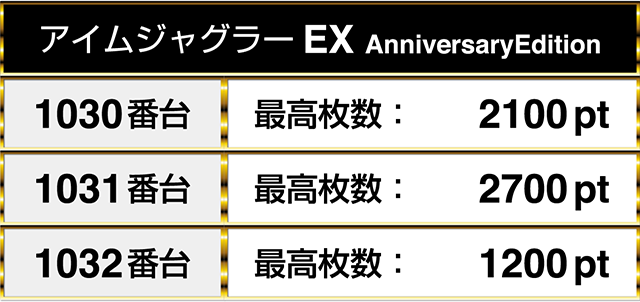前回の降臨シリーズに引き続き、『マイジャグラーⅢ』と『アイムジャグラーEX AnniversaryEdition』にプラスptが連なる!!