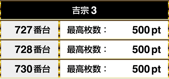 5台設置の『吉宗3』は、3台が連なってプラスptを記録した。