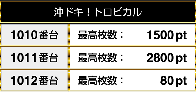 2800ptの台があった『沖ドキ!トロピカル』も3台が連なってプラスpt!!