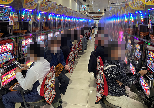 いくつもの場所に活気のある光景が広がっていた「パチンコ&スロットSHIROYAMA」。にぎわいが感じられるなかで、プレイヤーたちは機種のおもしろさを堪能している様子であった。
