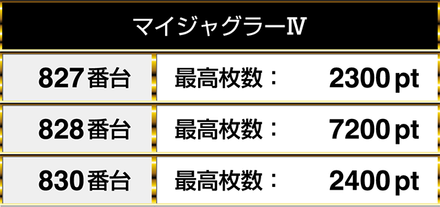 『マイジャグラーⅣ』の3台が連なってプラスptとなり、1台は7000ptオーバー!!