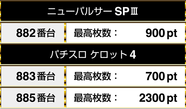 2機種を通してプラスptが並ぶ場所は『ニューパルサーSPⅢ』と『パチスロ ケロット4』にもあった。