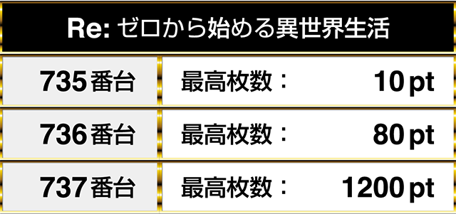 『Re:ゼロから始める異世界生活』も3台が並んでプラスptとなり、そのうちの1台は1200pt!