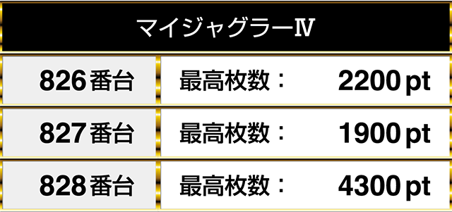 閉店時には3台が並んで1000pt以上を記録し、1台は4300pt!!