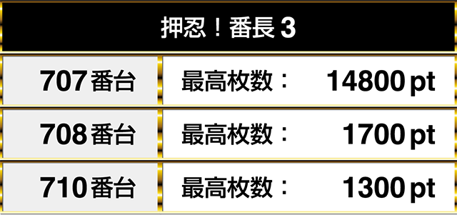最終的には707番台から710番台までの3台が連なってプラスptを記録!