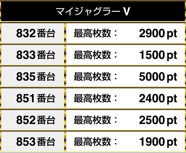 『マイジャグラーV』には1000pt以上の3台並びが2箇所!