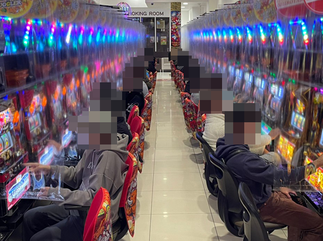 いたるところに華やかな光景が広がっていた「パチンコ&スロットSHIROYAMA」。遊技を満喫しているような姿をはじめ、目をひかれる場面が多かった。