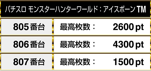 『パチスロ モンスターハンターワールド:アイスボーンTM』は設置されている3台のすべてがプラスpt!!