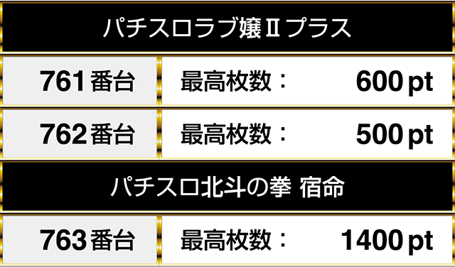 となりにある『パチスロ北斗の拳 宿命』の1台をあわせると、3台が並んでプラスptとなった。