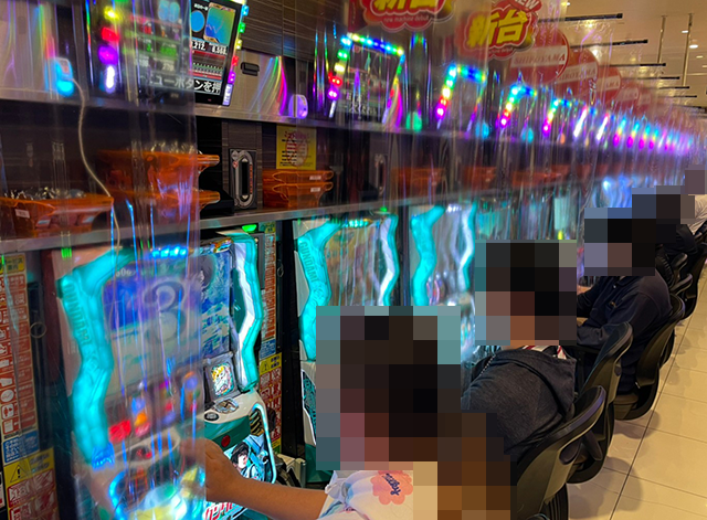 19時頃に確認したときには、すべての台に遊技を楽しむプレイヤーの姿があった。