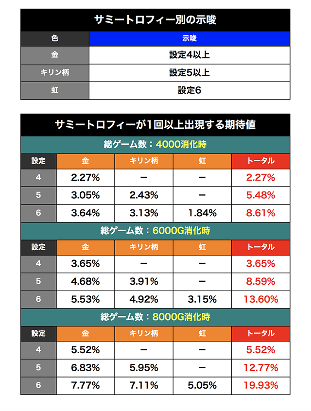 サミートロフィーが出現すれば、設定4以上が濃厚だ。