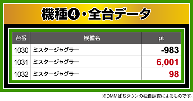 『ミスタージャグラー』もにぎわいは大きく、1031番台が6,001pt。