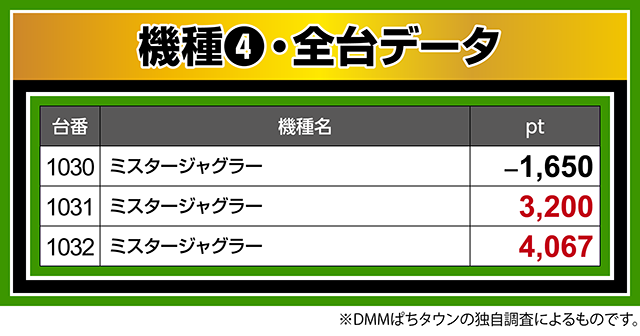 『ミスタージャグラー』では、1032番台が4,000ptオーバー。
