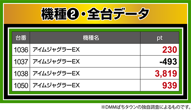 『アイムジャグラーEX』も活気が大きく、1038番台が3,819pt。