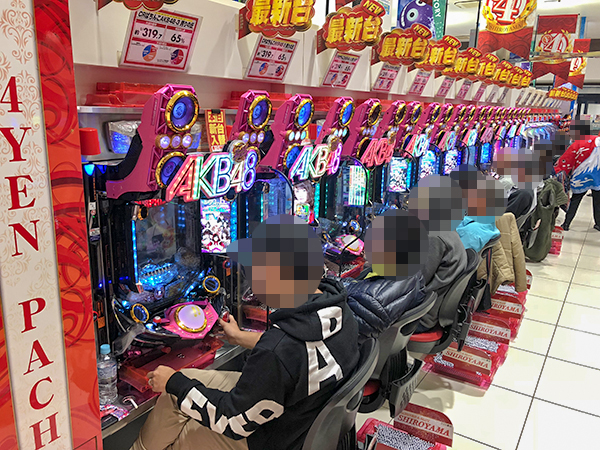 新台として導入された4円パチンコの「CRぱちんこ AKB48-3 誇りの丘」はもちろん大人気で、空き台は全く見当たらなかった。